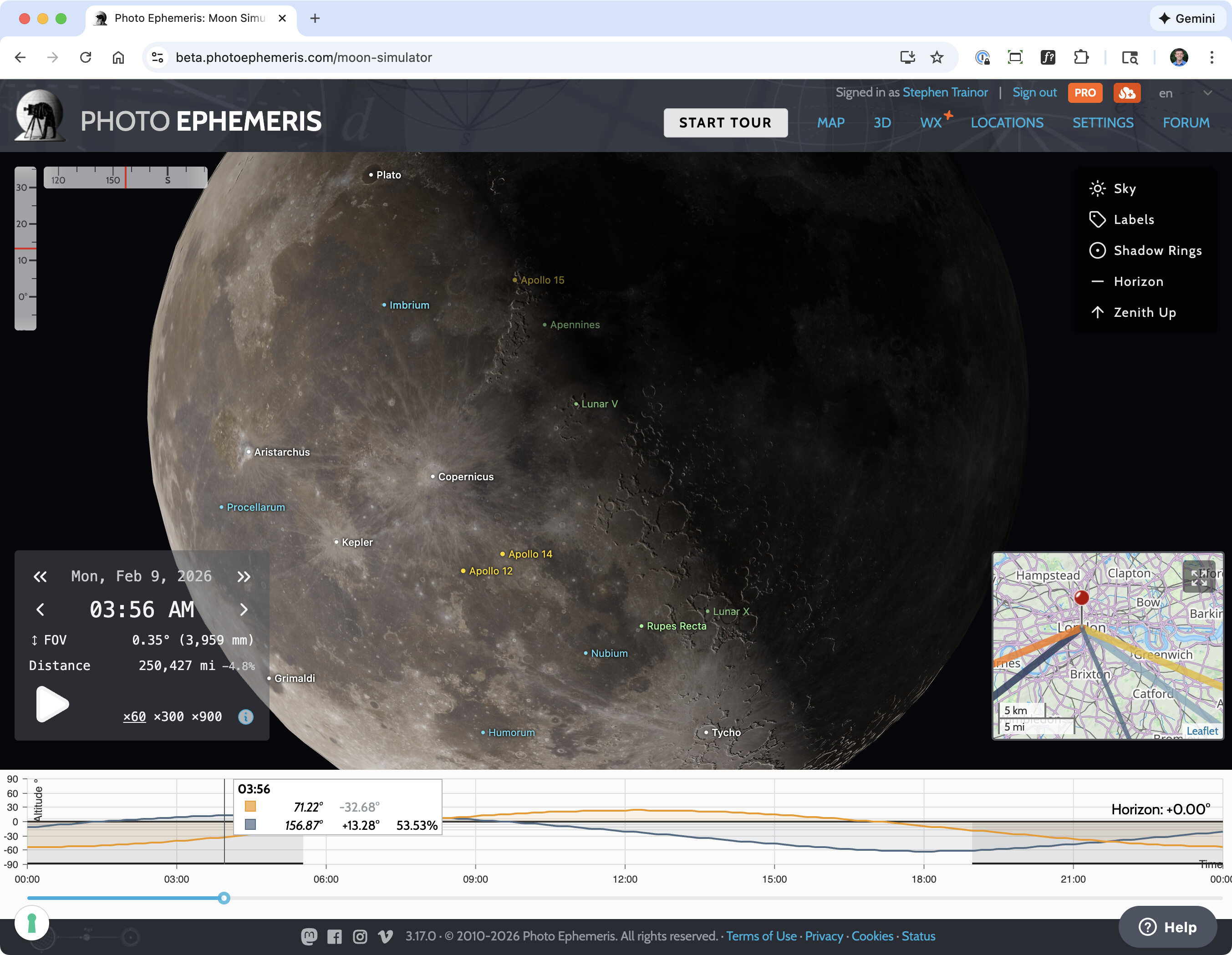 It’s super easy to access: go to a time when the Moon is up, and you’'ll see it on the map top right - click the expand button to enjoy in all its full screen glory!