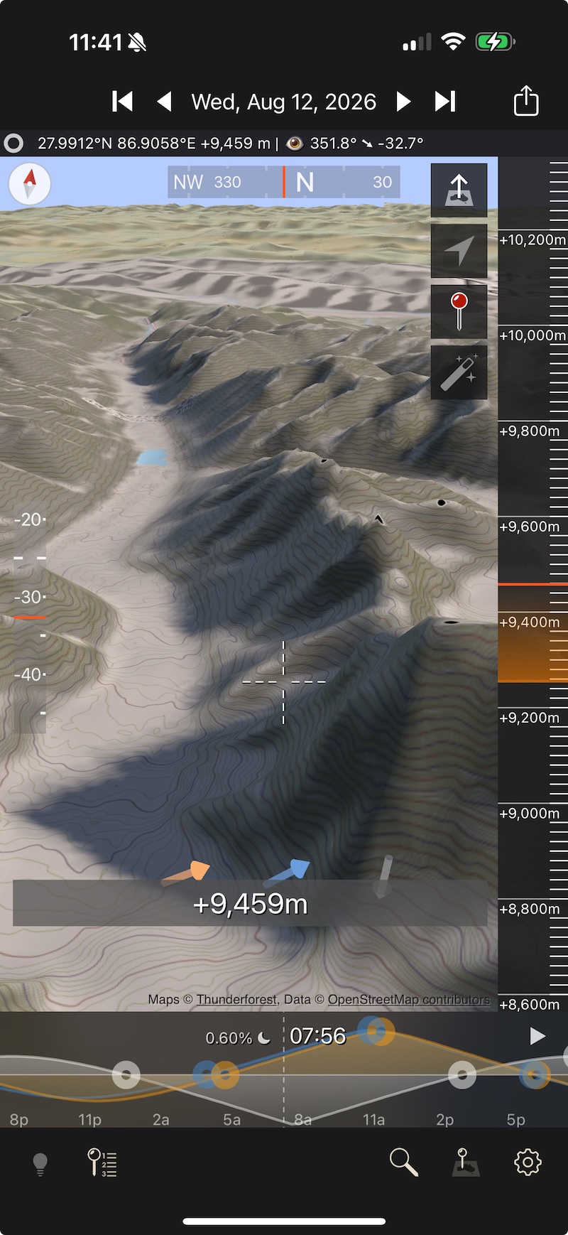 Finally, the pitch and bearing gauges (screenshot left and top, respectively) are now pannable - drag up or down to adjust the camera pitch and left of right to adjust camera bearing (direction of view). This provides a higher level of control for the camera orientation than was previously available.